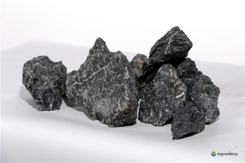 Tolles, dunkles Dekorationsgestein im praktischen Set für Süsswasser-Aquarien und Terrarien. Ideal für Aquascaping geeignet! Das Set enthält genügend Steine um ein 100 cm Becken perfekt zu dekorieren, die Anzahl der Steine kann dabei je nach Größe der Einzelstücke variieren.