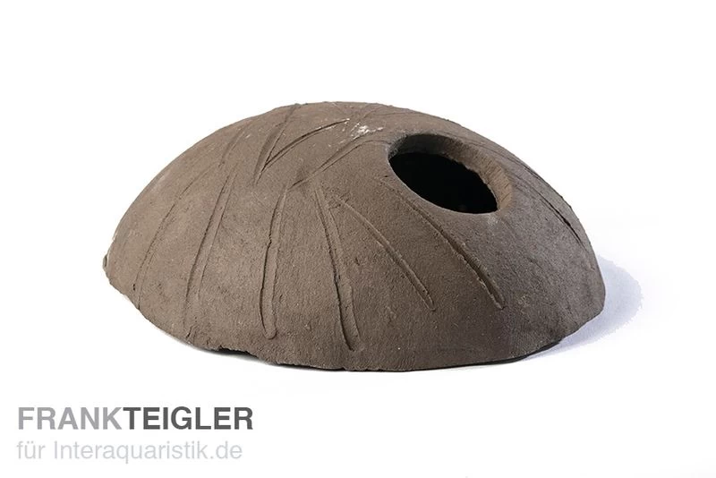 Die tönerne Laichhöhle aus dem Hause Aquariumkeramik erinnert optisch an ein Iglu. Sie ist ungefähr 7 cm hoch und hat einen Durchmesser von zirka 14 cm. Der Eingang verfügt über einen Durchmesser von 4,5 cm.