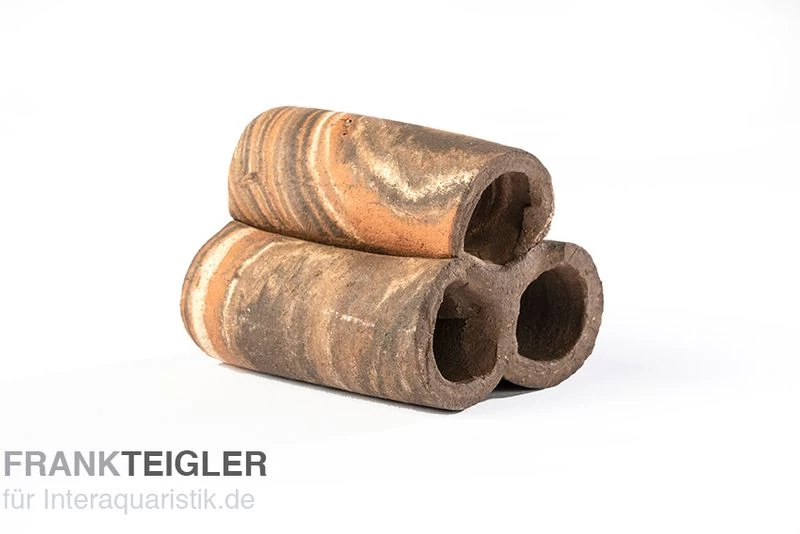 Der tönerne Röhrenturm aus dem Hause Aquariumkeramik ist aus 4 Röhren gefertigt. Eine jede der gebrannten Röhren verfügt über eine Länge und ungefähr 6 – 7 cm bei einem Durchmesser von zirka 1,5 cm. Bei der Herstellung wurde ein sogenanntes Schlickverfahren angewandt, was die zusätzliche Verwendung von Klebstoff unnötig macht.