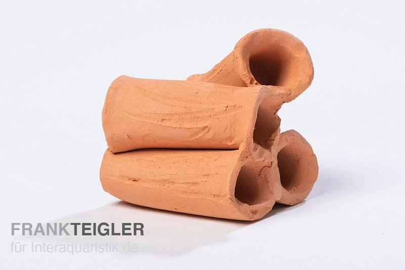 Der tönerne Röhrenturm aus dem Hause Aquariumkeramik ist aus 4 Röhren gefertigt. Eine jede der gebrannten Röhren verfügt über eine Länge und ungefähr 6 – 7 cm bei einem Durchmesser von zirka 1,5 cm. Bei der Herstellung wurde ein sogenanntes Schlickverfahren angewandt, was die zusätzliche Verwendung von Klebstoff unnötig macht.