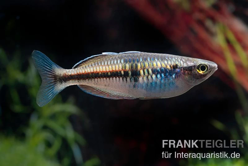 | Nahrung: | Die Fütterung des Prachtregenbogenfischs kann mit Lebendfutter und Frostfutter erfolgen. Gelegentlich kann auch mit handelsüblichem Flockenfutter für Zierfische gefüttert werden. |